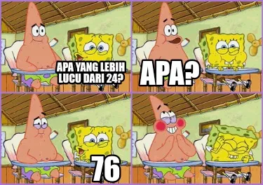 Make your own "Apa yang lebih lucu dari 24? Apa? 76" meme with MemeCreator's free online meme generator. Add text, stickers, and drawings — then download or share. No watermark, no sign-up required.