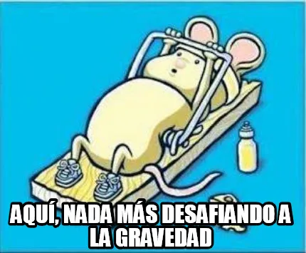 Make your own "Aquí, nada más desafiando a la gravedad" meme with MemeCreator's free online meme generator. Add text, stickers, and drawings — then download or share. No watermark, no sign-up required.