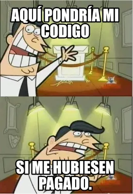 Make your own "Aquí pondría mi codigo Si me hubiesen pagado." meme with MemeCreator's free online meme generator. Add text, stickers, and drawings — then download or share. No watermark, no sign-up required.