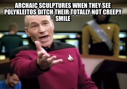 Create Archaic sculptures when they see Polykleitos ditch their totally not creepy smil Meme