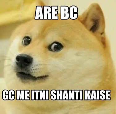 Make your own "Are bc Gc me itni shanti kaise" meme with MemeCreator's free online meme generator. Add text, stickers, and drawings — then download or share. No watermark, no sign-up required.