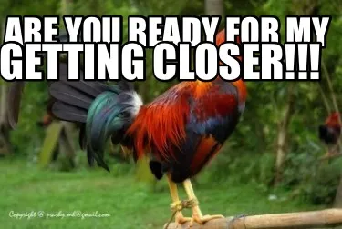 Make your own "Are you ready for my Getting closer!!!" meme with MemeCreator's free online meme generator. Add text, stickers, and drawings — then download or share. No watermark, no sign-up required.