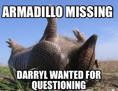 Armadillo missing Darryl wanted for questioning Meme Template