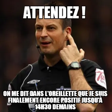 Funny attendez ! on me dit dans l'oreillette que je suis finalement encore positif jus Meme Template