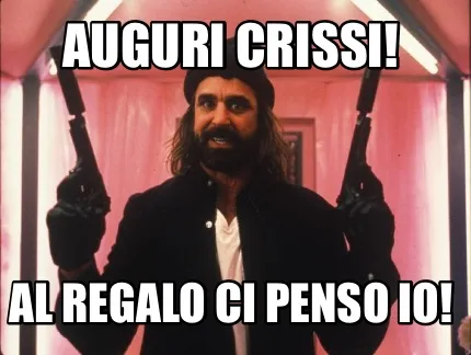 Make your own "Funny Auguri Crissi! Al regalo ci penso io!" meme with MemeCreator's free online meme generator. Add text, stickers, and drawings — then download or share. No watermark, no sign-up required.