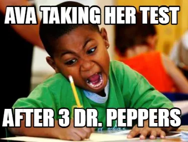 Create Funny Ava taking her test after 3 Dr. Peppers Meme