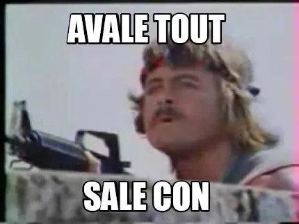 Make your own "Funny AVALE TOUT SALE CON" meme with MemeCreator's free online meme generator. Add text, stickers, and drawings — then download or share. No watermark, no sign-up required.