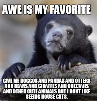 Create Funny Awe is my favorite Give me doggos and pandas and otters and bears and giraffes Meme