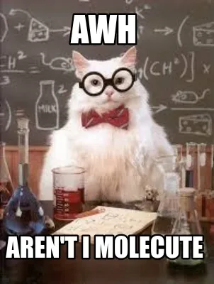 Make your own "Funny AWH AREN'T I MOLECUTE" meme with MemeCreator's free online meme generator. Add text, stickers, and drawings — then download or share. No watermark, no sign-up required.