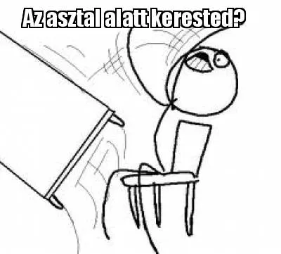 Make your own "Funny Az asztal alatt kerested?" meme with MemeCreator's free online meme generator. Add text, stickers, and drawings — then download or share. No watermark, no sign-up required.
