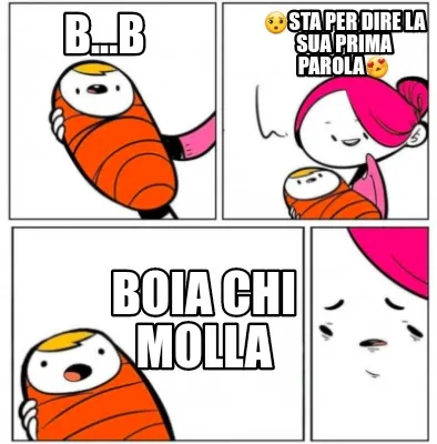 Make your own "Funny b...b boia chi molla ????sta per dire la sua prima parola????" meme with MemeCreator's free online meme generator. Add text, stickers, and drawings — then download or share. No watermark, no sign-up required.