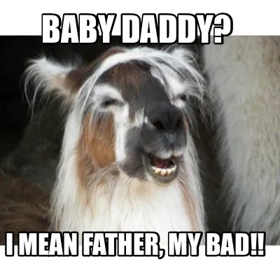 Make your own "Baby Daddy? I mean father, my bad!!" meme with MemeCreator's free online meme generator. Add text, stickers, and drawings — then download or share. No watermark, no sign-up required.