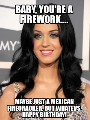 Make your own "Funny Baby, You're A firework.... Maybe just a Mexican firecracker, but whatevs. Happy" meme with MemeCreator's free online meme generator. Add text, stickers, and drawings — then download or share. No watermark, no sign-up required.