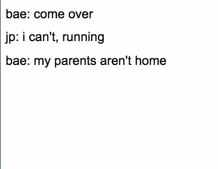 Bae: come over bae: my parents aren't home jp: i can't, running Meme Template