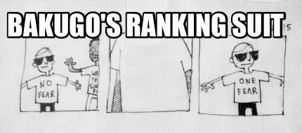 Make your own "Funny Bakugo's ranking suit" meme with MemeCreator's free online meme generator. Add text, stickers, and drawings — then download or share. No watermark, no sign-up required.