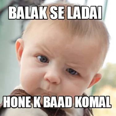 Make your own "Funny balak se ladai hone k baad komal" meme with MemeCreator's free online meme generator. Add text, stickers, and drawings — then download or share. No watermark, no sign-up required.