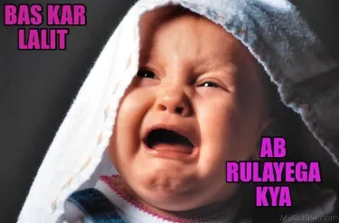 Make your own "Funny Bas kar Lalit Ab rulayega kya" meme with MemeCreator's free online meme generator. Add text, stickers, and drawings — then download or share. No watermark, no sign-up required.
