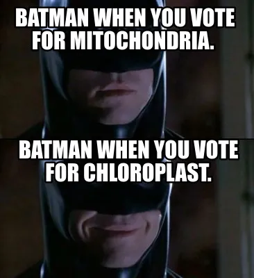 Create Batman when you vote for mitochondria. Batman when you vote for chloroplast. Meme