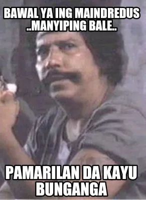 Make your own "Bawal ya ing maindredus ..manyiping bale.. Pamarilan da kayu bunganga" meme with MemeCreator's free online meme generator. Add text, stickers, and drawings — then download or share. No watermark, no sign-up required.
