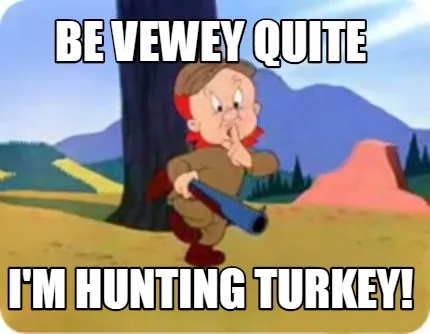 Make your own "Be vewey quite I'm hunting turkey!" meme with MemeCreator's free online meme generator. Add text, stickers, and drawings — then download or share. No watermark, no sign-up required.
