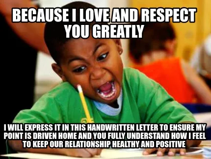 Create Funny because I love and respect you greatly I will express it in this handwritten let Meme