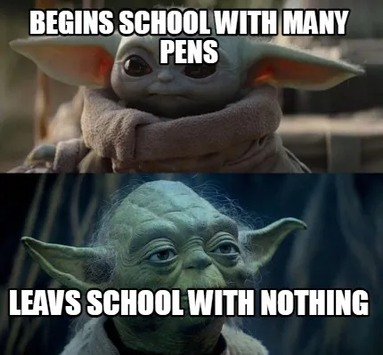 Create Funny begins school with many pens leavs school with nothing Meme