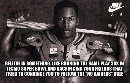 Funny Believe in something. Like running the same play 30x in tecmo super bowl and sa Meme Template
