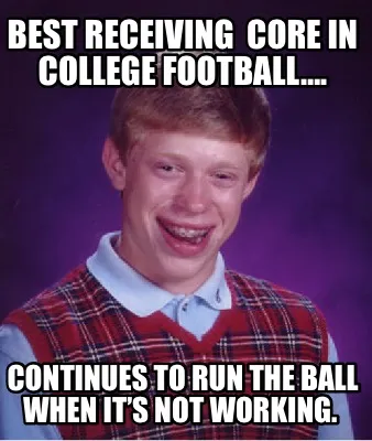 Make your own "Best receiving core in college football…. Continues to run the ball when it�" meme with MemeCreator's free online meme generator. Add text, stickers, and drawings — then download or share. No watermark, no sign-up required.