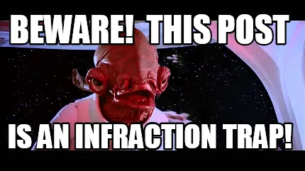Make your own "Funny Beware! this post is an infraction trap!" meme with MemeCreator's free online meme generator. Add text, stickers, and drawings — then download or share. No watermark, no sign-up required.