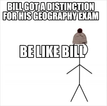 Create Funny Bill got a distinction for his Geography Exam Be like bill Meme