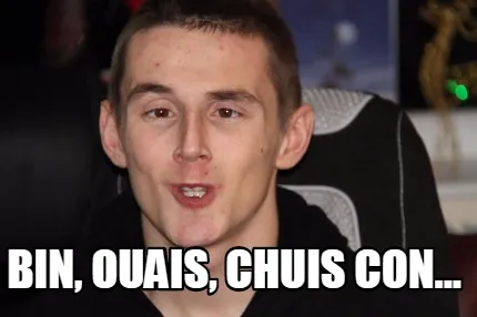 Make your own "Bin, ouais, chuis con..." meme with MemeCreator's free online meme generator. Add text, stickers, and drawings — then download or share. No watermark, no sign-up required.