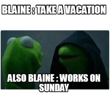 Create Funny Blaine : Take a vacation also blaine : works on sunday Meme