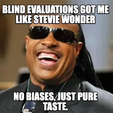 Create Funny Blind evaluations got me like Stevie Wonder no biases, just pure taste. Meme