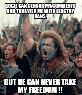 Create Funny Bogie can censor my comments and threaten me with lengthy bans, but he can never Meme