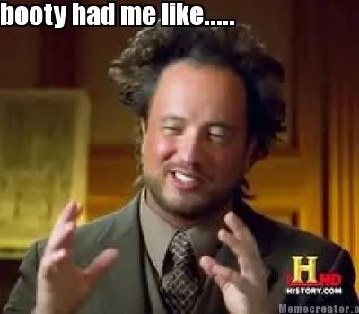 Make your own "Booty had me like....." meme with MemeCreator's free online meme generator. Add text, stickers, and drawings — then download or share. No watermark, no sign-up required.