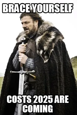 Make your own "Brace yourself Costs 2025 Are Coming" meme with MemeCreator's free online meme generator. Add text, stickers, and drawings — then download or share. No watermark, no sign-up required.