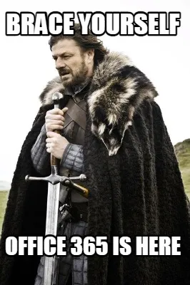 Make your own "Brace Yourself Office 365 is Here" meme with MemeCreator's free online meme generator. Add text, stickers, and drawings — then download or share. No watermark, no sign-up required.