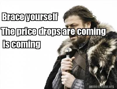 Make your own "Brace yourself The price drops are coming is coming" meme with MemeCreator's free online meme generator. Add text, stickers, and drawings — then download or share. No watermark, no sign-up required.