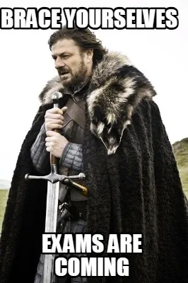 Make your own "Brace yourselves Exams are coming" meme with MemeCreator's free online meme generator. Add text, stickers, and drawings — then download or share. No watermark, no sign-up required.