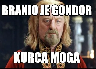 Make your own "Branio je gondor Kurca moga" meme with MemeCreator's free online meme generator. Add text, stickers, and drawings — then download or share. No watermark, no sign-up required.