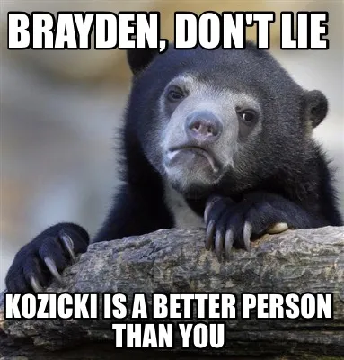 Brayden, don't lie Kozicki is a better person than you Meme Template