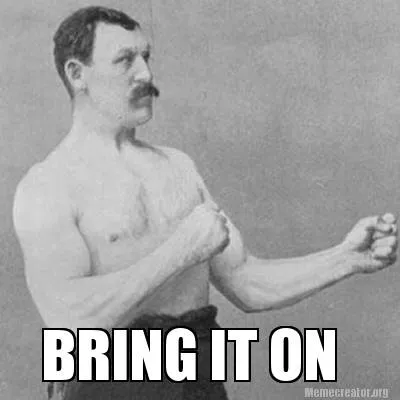 Make your own "BRING IT ON" meme with MemeCreator's free online meme generator. Add text, stickers, and drawings — then download or share. No watermark, no sign-up required.