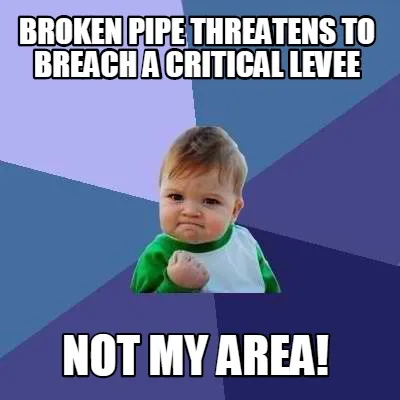 Create Broken pipe threatens to breach a critical levee not my area! Meme