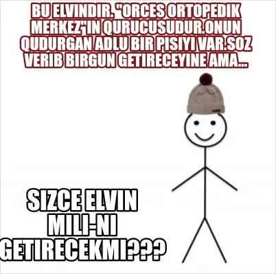 Make your own "Bu Elvindir. Orces Ortopedik Merkezin Qurucusudur.Onun Qudurgan Adlu Bir Pisiyi" meme with MemeCreator's free online meme generator. Add text, stickers, and drawings — then download or share. No watermark, no sign-up required.
