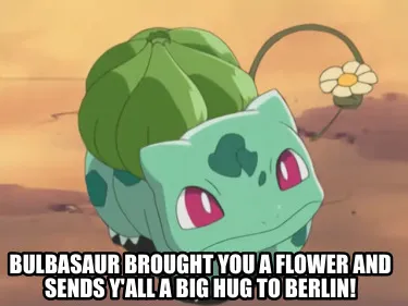 Create BULBASAUR BROUGHT YOU A FLOWER AND SENDS Y'ALL A BIG HUG To Berlin! Meme