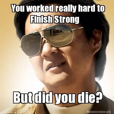 Create Funny But did you die? You worked really hard to Finish Strong Meme
