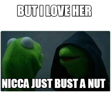 Make your own "But I love her nicca just bust a nut" meme with MemeCreator's free online meme generator. Add text, stickers, and drawings — then download or share. No watermark, no sign-up required.