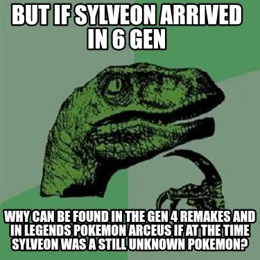 Create But if Sylveon arrived in 6 Gen Why can be found in the Gen 4 Remakes and in Leg Meme