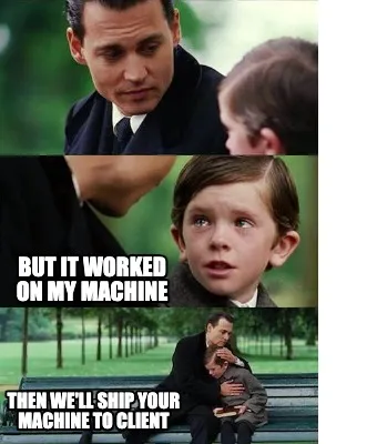 But it worked on my machine then we'll ship your machine to client Meme Template