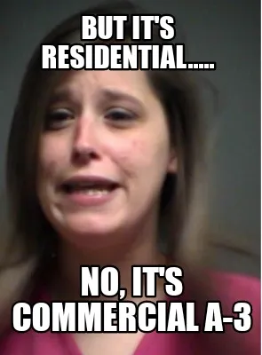 Make your own "But it's residential..... No, it's commercial A-3" meme with MemeCreator's free online meme generator. Add text, stickers, and drawings — then download or share. No watermark, no sign-up required.